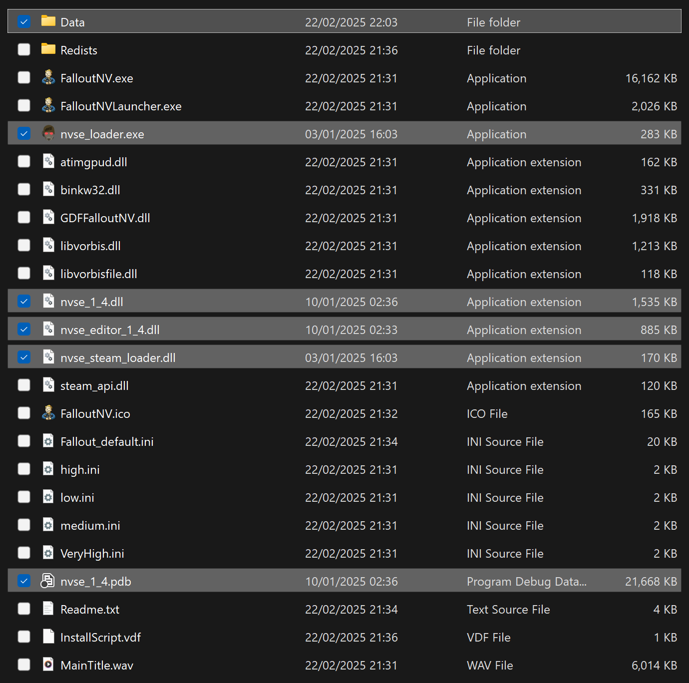 nvse_steam_loader.dllis still needed with the GOG and Epic Games copies of the game. -